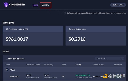 第一步:在主頁點擊Liquidity,進入流動性挖礦的頁面;
