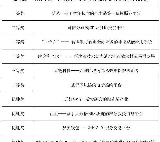 福建省創新研究院張云峰副院長、福建省企業與企業家聯合會劉捷明會長、福建省數字福建建設領導小組辦公室陳同彩副主任、中國電子技術標準化研究院研究室李鳴主任、中國計算機學會區塊鏈專委會斯雪明主任,海峽兩岸法學交流促進會副會長、北京培黎職業學院魏群總督學,福建省工業和信息化廳科技處張維秀處長,福州市工業和信息化局林端雄副局長,福州高新技術產業開發區管理委員會林翔副主任,河北金融學院區塊鏈中心常務主任趙永新教授,福建省區塊鏈協會陳意斌會長等嘉賓和來自福州市、漳州市、三明市、龍巖市、寧德市等各地市工信局、平潭綜合試驗區經濟發展局、以及大賽各舉辦單位、承辦單位相關處室負責同志共同參加和見證了大賽頒獎典禮,至此,第七屆“創客中國”區塊鏈中小企業創新創業大賽圓滿收官。