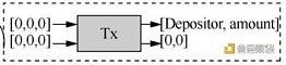 3)側鏈上創建的交易包含兩個輸入UTXO和兩個輸出UTXO,在存款(充
