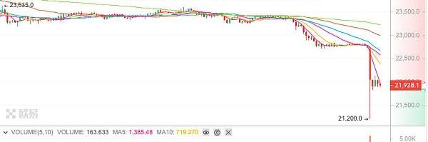 這波下跌行情其實是從今早7點左右開始的,經過一波小調整后,幣價進入小平臺整理,下午2點半開始二輪殺跌,15分鐘級別看,伴隨放量下跌,K線形態出現明顯的插針行情,目前幣價仍在22000點下方弱勢運行,不排除行情有進一步下探的可能性。