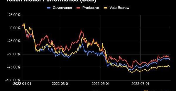 雖然直覺上許多人認為治理代幣應該表現最差,因為他們被廣泛認為是無價值的,但投票托管代幣實際上是三種代幣模型中平均表現最差的。需要注意的是,這一成績不包括持有者從協議費、賄賂和任何其他正向現金流活動中獲得的任何收益。