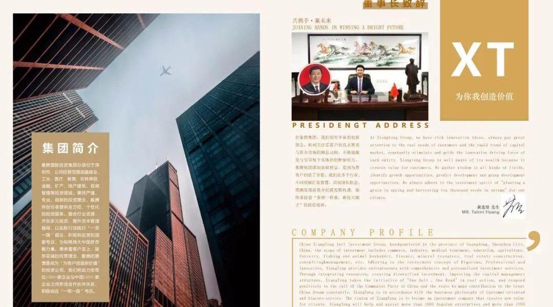 象騰國際投資集團總部位于深圳市,公司經營范圍涵蓋商業、工業、醫療、教育、農林漁牧、金融、礦產、地產建筑、咨詢管理等投資領域。秉持嚴謹、專業、創新的投資理念,向創業者提供全方位、個性化的投資服務。整合行業資源,開創多元投資,提升資本管理格局,以實際行動踐行“一帶一路”倡議,積極響應黨和國家號召,為構筑偉大中國夢貢獻力量。秉承著客戶至上、服務至誠的經營理念,愿景是成為“為客戶創造新價值”的投資公司。