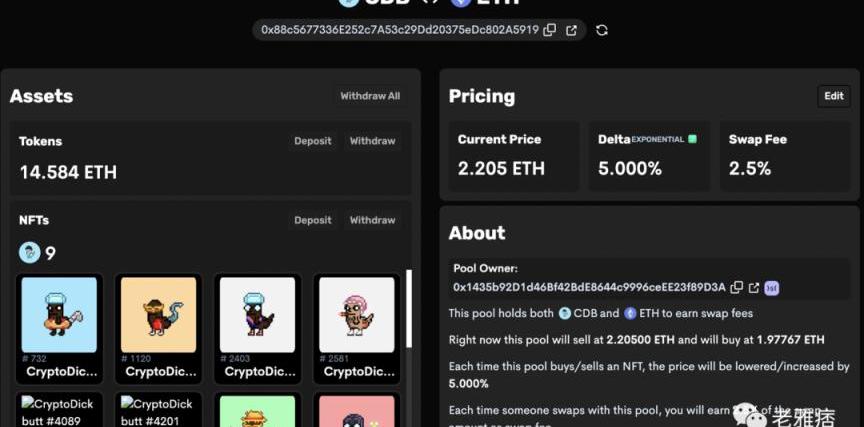 在上面這個例子中,人們可以按指數粘合曲線以ETH出售或購買dickbutts。Sudoswap還允許你對一個集合中的所有資金池進行出價,這意味著你可以通過點擊一個按鈕對多個流動性的dickbutts進行出價。