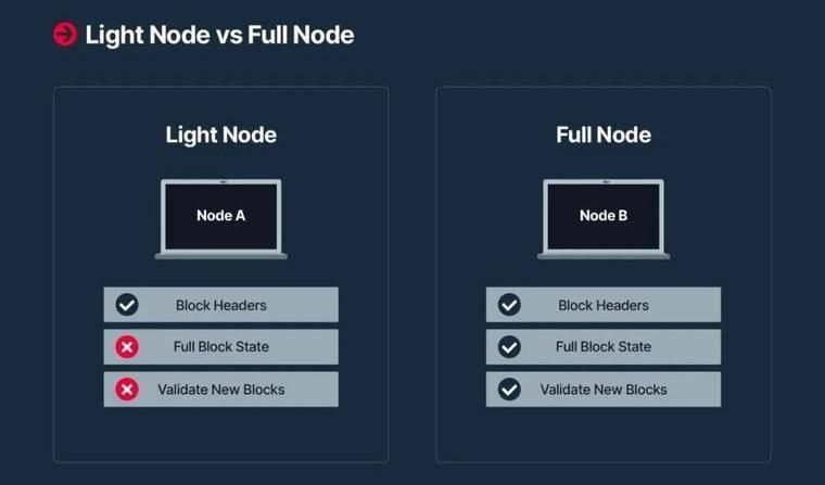 再拿以太坊舉個例子,根據復雜程度不一,可運行的節點為:全節點、輕節點和存檔節點。