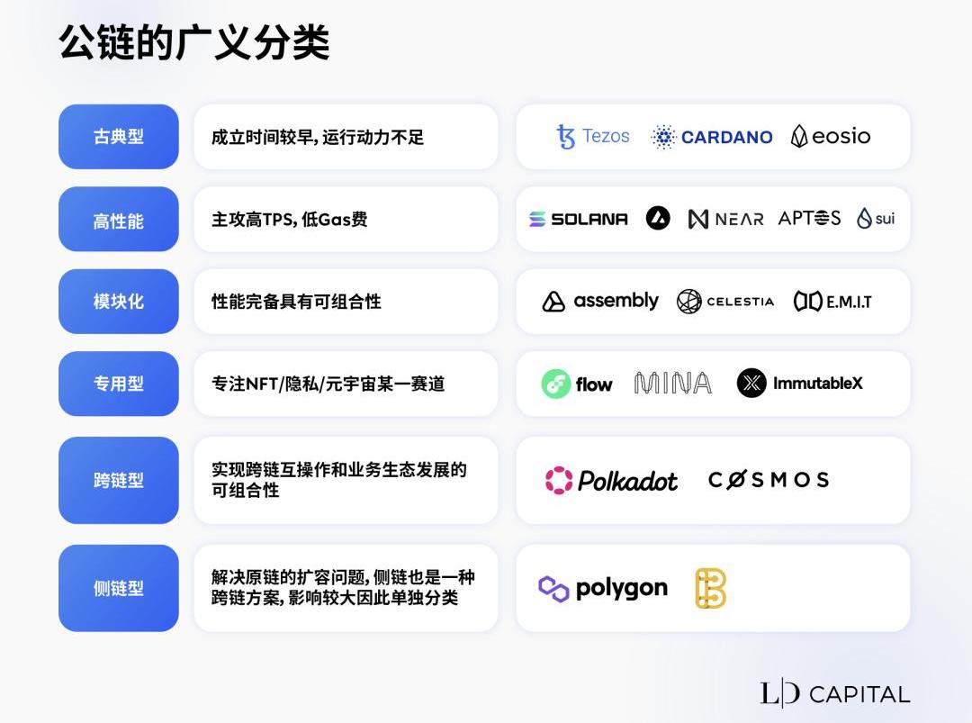 特色公鏈是從廣義公鏈中進一步剝離出來的概念,對公鏈特征在技術特色,Product-MarketFit,價值敘事層面進行細分,以感受公鏈迭代的方向。例如: