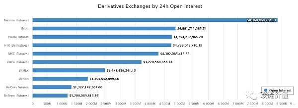 從上述數據可以看出,幣安仍是比特幣衍生品市場里的「老大」,其期貨未平倉量幾乎是第二名ByBit的兩倍。另外,三大中心化衍生品交易所幣安、火幣和ByBit日均交易額都超過了1000億美元,其中幣安一家就占到570億美元。