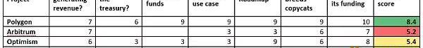 根據我的研究和分析,我給每個項目的每個類別的評分都在1-10之間。正如你所看到的,明顯最終的贏家是Polygon。