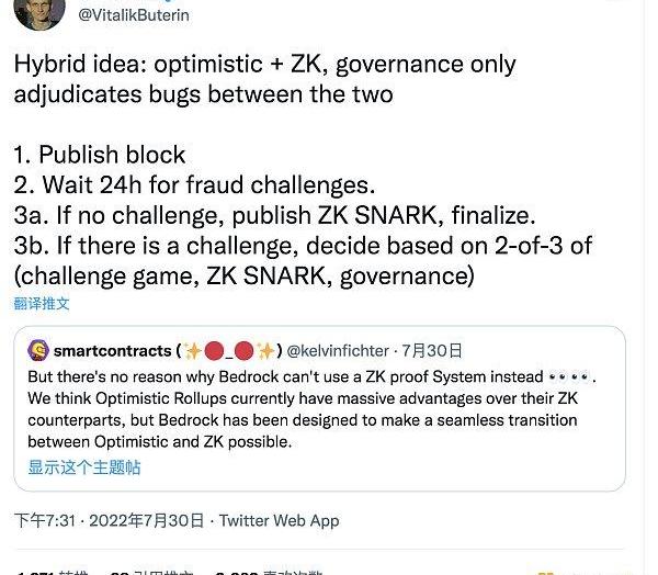 “混合思路:optimistic+ZK,治理只用于判決兩者之間的漏洞。